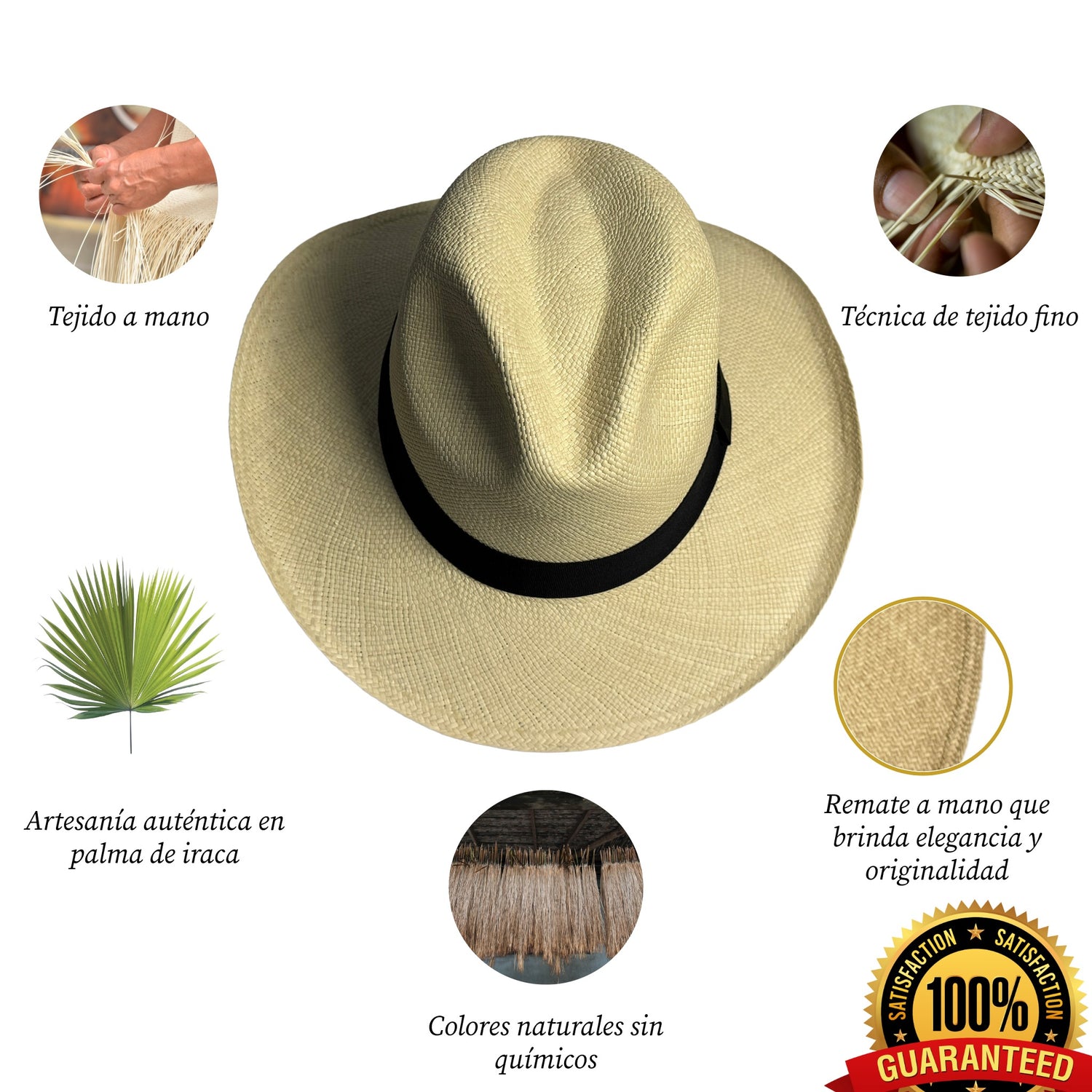👒 Hecho a mano con fibras naturales — Cada pieza está tejida con paja toquilla
