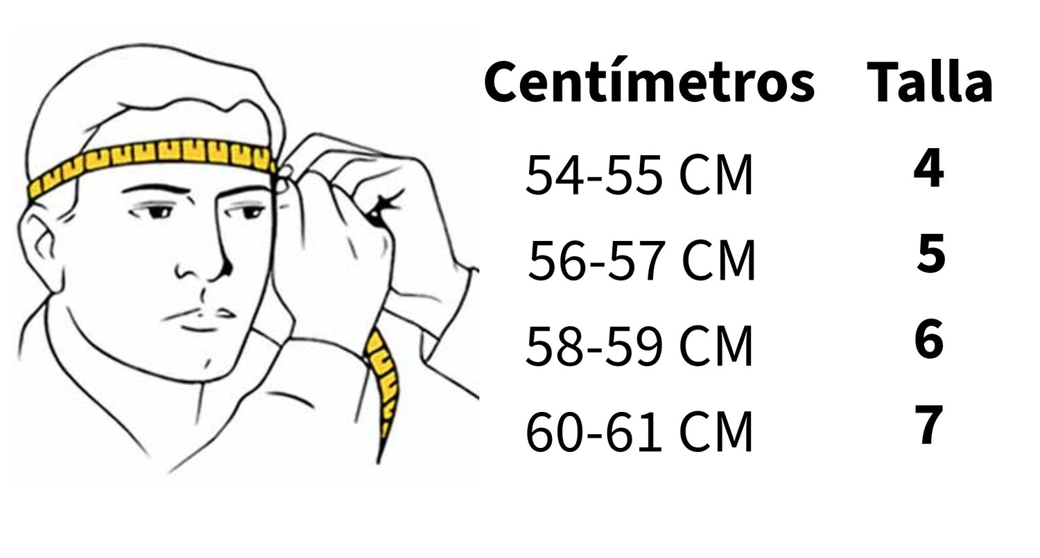Mide el contorno de tu cabeza con una cinta métrica, justo por encima de las cejas y orejas. Luego compara los centímetros obtenidos con la tabla para elegir tu talla ideal